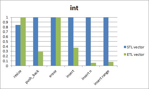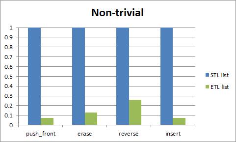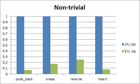 Two data types have been used. The first is a simple 'int', the second, a class with non-trivial constructor, copy